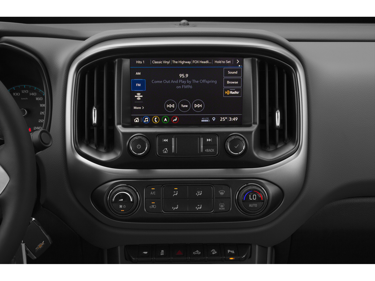 - Audio system, Chevrolet Infotainment 3 Plus system 8" diagonal HD color touchscreen, AM/FM stereo, Bluetooth® audio streaming for 2 active devices, Apple CarPlay and Android Auto capable, voice recognition, in-vehicle apps, cloud connected personalization for select infotainment and vehicle settings. Subscription required for enhanced and connected services after trial period
