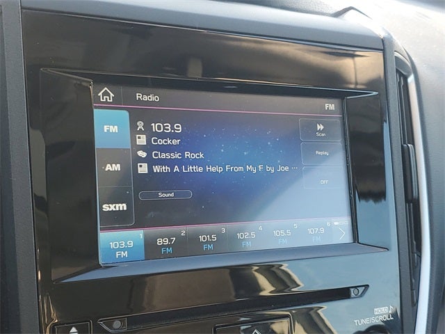 - Radio: Subaru STARLINK 6.5" Multimedia Plus System -inc: AM/FM stereo, HD Radio, single disc CD player w/MP3/WMA/CRR/RW file capability, multi-touch gesture high resolution display screen, voice activated controls, Bluetooth® audio streaming and hands-free phone connectivity, Bluetooth® hands-free SMS text messaging connectivity, iPod control capability, rear-vision camera display, SiriusXM All Access radio (4 months free trial/subscription required after), SiriusXM Travel Link (4 months free trial/subscription required after), smartphone integration: AHA, Android Auto, Apple CarPlay, Pandora, STARLINK cloud applications, 6 speakers, 3.5mm auxiliary input jack, dual USB A input charge ports, roof mounted antenna and audio/satellite connected services