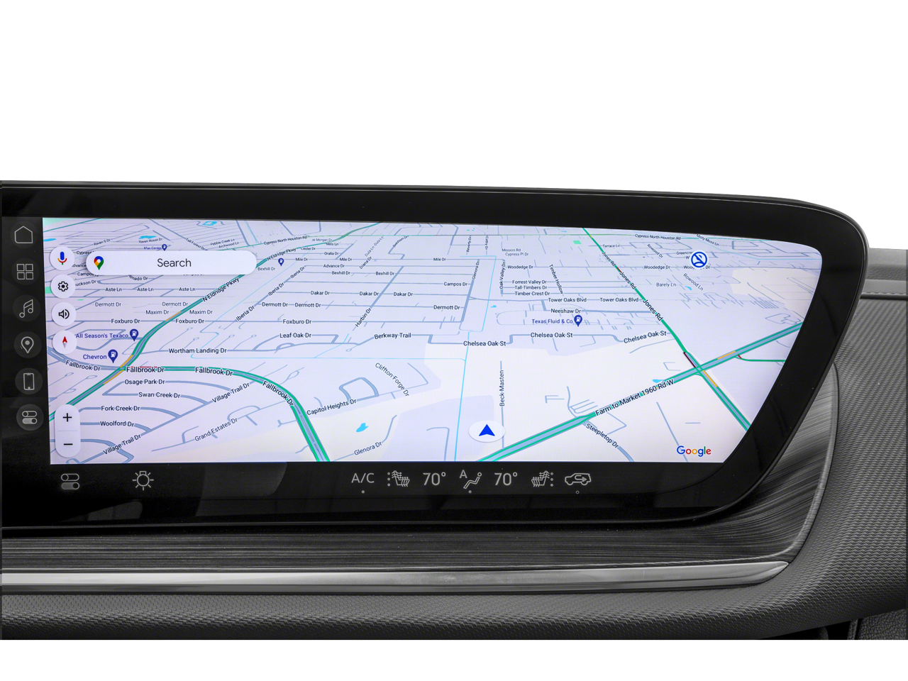 - Display, Ultra-wide 30" diagonal screen with Google built-in. Provides navigation capability, connected apps, personalized profiles for each driver's settings, Natural Voice Recognition and Phone Integration for Wireless Apple CarPlay/Wireless Android Auto for compatible phones.